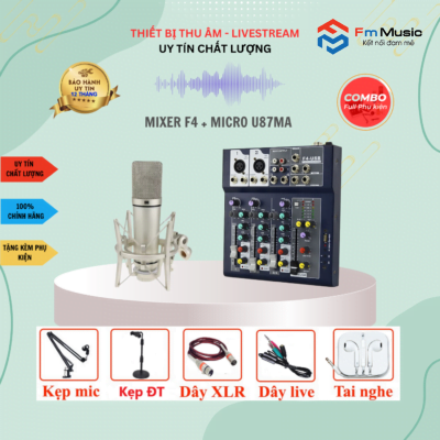 Trọn Bộ Combo livestream Mixer Yamaha F4 và Micro MA87 âm thanh cực căng,với đường chỉnh âm thanh nhạc riêng giúp MIXER YAMAHA F4 là sự lưạ chọn hoàn hảo cho việc livestream hát hò với âm thanh ra rất căng.kết hợp micro MA87 âm thanh sáng trong,đậm dày tiếng và rất ấm.