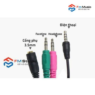 - 1. Đầu tiên là cổng phụ 3.5 mm, bạn có thể kết nối với các jack 3.5 nhưng thông thường dây này sẽ bỏ qua không dùng2. Tiếp theo là dây Facetime màu xanh, nếu các bạn facetime nói chuyện với bạn bè thì cắm dây này, thông thường mình cũng sẽ bỏ qua không dùng dây màu xanh3. Dây màu hồng headphone bạn cắm vào cổng output của sound card, tức là cổng mà các bạn cắm loa hoặc tai nghe trên sound card4. Dây màu đen kết nối với chính chiếc điện thoại để live stream