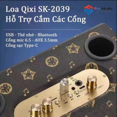 Loa Bluetooth Qixi SK2039 có công suất 2 * 25W, kích thước loa 6,5 inch, khoảng cách Bluetooth 10m, dung lượng pin 3600mAh và thời gian chơi lên đến 6-10 giờ. Loa còn hỗ trợ nhiều phương tiện kết nối khác nhau như USB disk, thẻ nhớ, FM và AUX. Các thông số kỹ thuật so với các bộ loa di động khác cũng rất tốt, giúp loa SK2039 hiệu suất hoạt động rất tốt và chất lượng âm thanh của nó không phải bàn cãi.