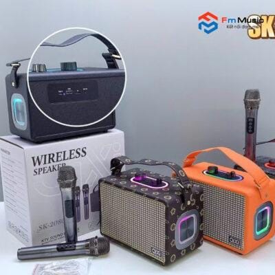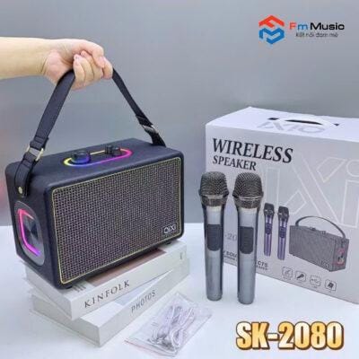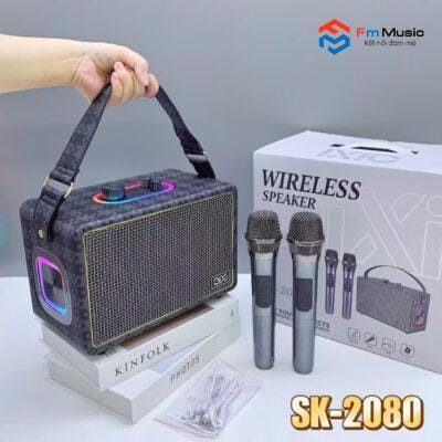 - Loa bluetooth nghe nhạc không dây SK-2080 âm bass hay trầm hỗ trợ cắm usb thẻ nhớ. Tích hợp 2 tay mic không dây hát cực hay