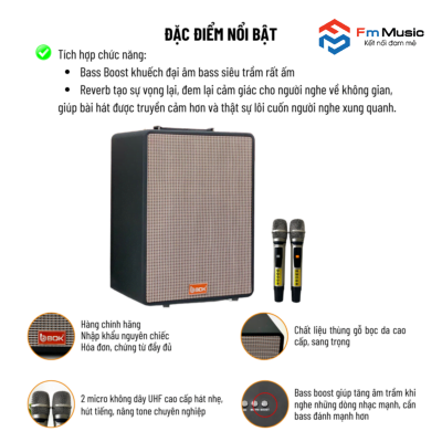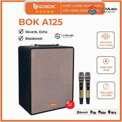 Loa karaoke di động BOK A-125 sử dụng Micro nhôm cao cấp UHF thay đổi tần số, thu âm, nâng cao giai điệu, nhẹ hơi, dễ hát.