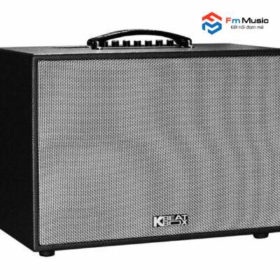 - Thùng loa từ gỗ chắc chắn, bọc da PU và lưới vải màu xám.
