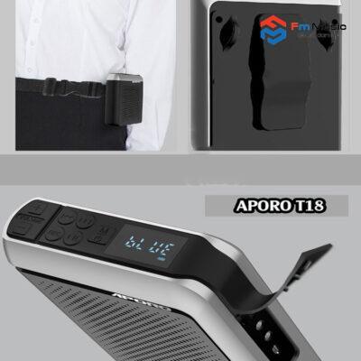 Pin loa dung lượng 4000mAh cho thời gian sử dụng lên đến 12 giờ liên tục, thời lượng pin micro là 8 giờ. Loa sở hữu 16 mức âm lượng được hiển thị trên màn hình LED để bạn điều chỉnh dễ dàng hơn. Các phím chức năng được làm chìm xuống có lớp cao su bao bọc bên ngoài để bạn thực hiện mọi thao tác một cách thoải mái nhất. Máy trợ giảng không dây Aporo T18 2.4G tặng kèm theo dây thắt lưng và kẹp có thể tháo rời cho bạn các kiểu đeo phù hợp vào hoàn cảnh riêng. Bạn có thể lựa chọn đeo trên thắt lưng, quàng qua một bên vai. Nhìn chung mic trợ giảng phù hợp với giáo viên, hướng dẫn viên, loa và các hoạt động ngoài trời, …