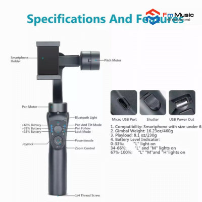 Gimbal S5B được trang bị khả năng chống rung 3 trục ổn định, đặc biệt phù hợp cho những nhà làm phim. Phím nút Zoom đã được cải thiện để bạn có thể phóng to hoặc thu nhỏ chỉ bằng cách xoay. Ngoài ra, các đèn báo Bluetooth, chuyển đổi chế độ và mức pin giúp bạn dễ dàng quan sát và điều chỉnh.